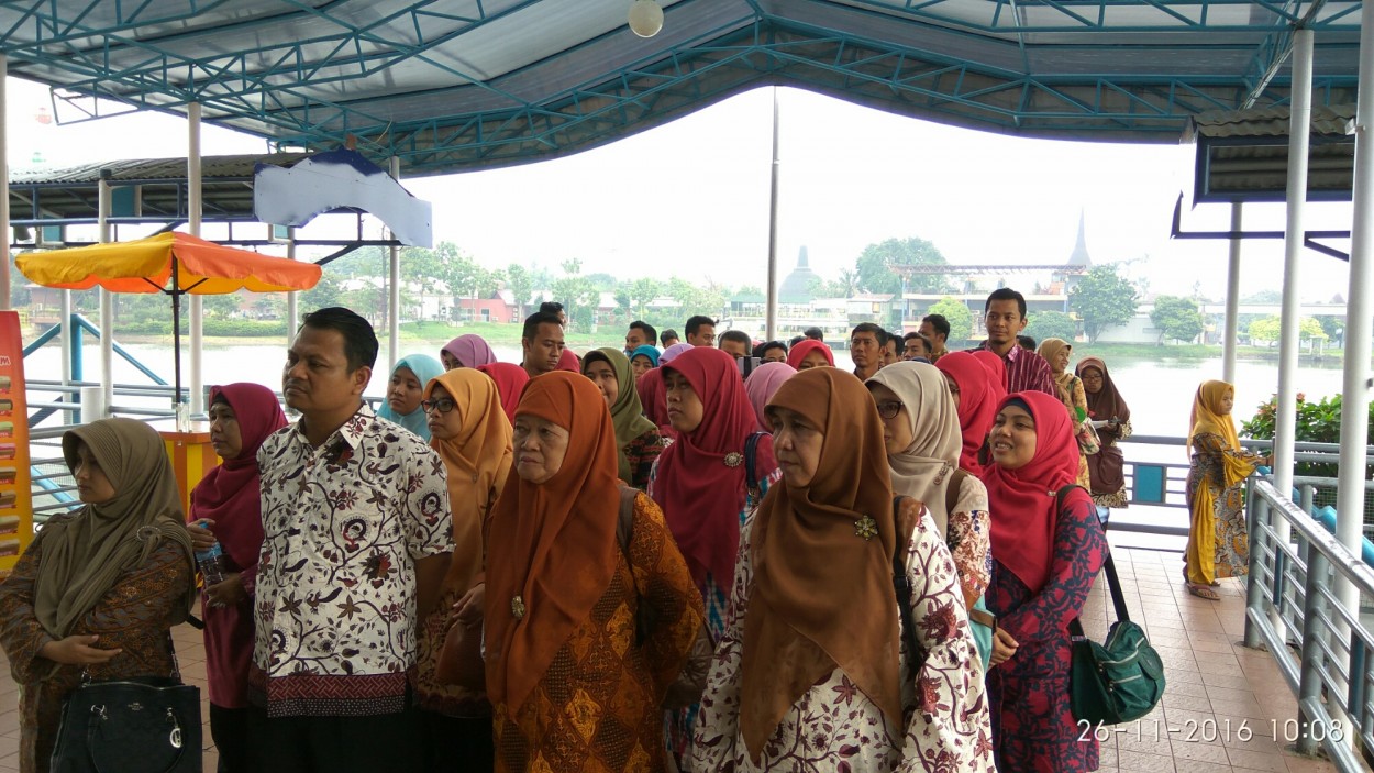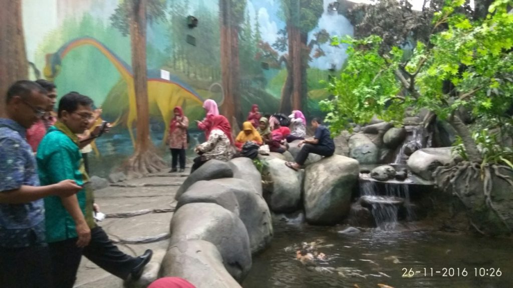Setelah menempuh perjalanan kurang lebih satu jam, akhirnya rombongan sampai di tujuan tepat pukul sembilan. Sebelum masuk ke dunia air tawar para guru di brifing terlebih dahulu untuk mengerjakan tugas yang sudah diberikan.