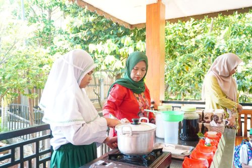 Selain kegiatan seni, siswa juga dikenalkan dengan kuliner khas Betawi. Mereka belajar membuat es selendang mayang dan kue kembang goyang, salah satu makanan ikon yang identik dengan kebudayaan Betawi.