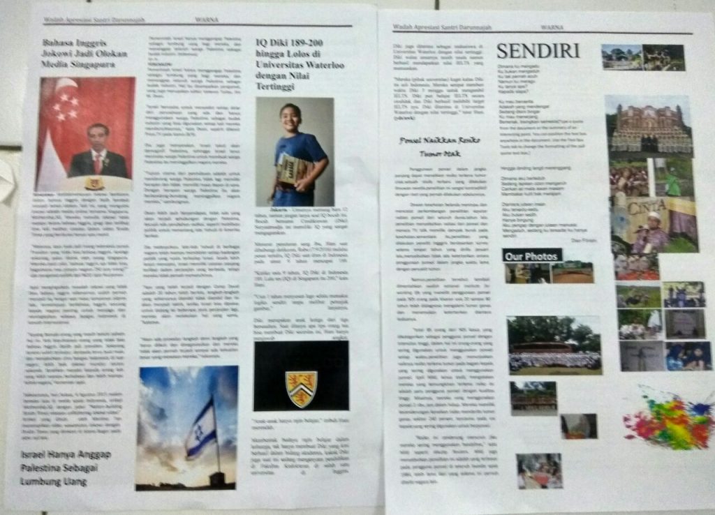 Koran yang dibuat oleh santriwati WARNA becontenkan berita-berita yang diambil dari referensi situs-situs terpercaya, dan hasil tulisan dari anggota WARNA itu sendiri.