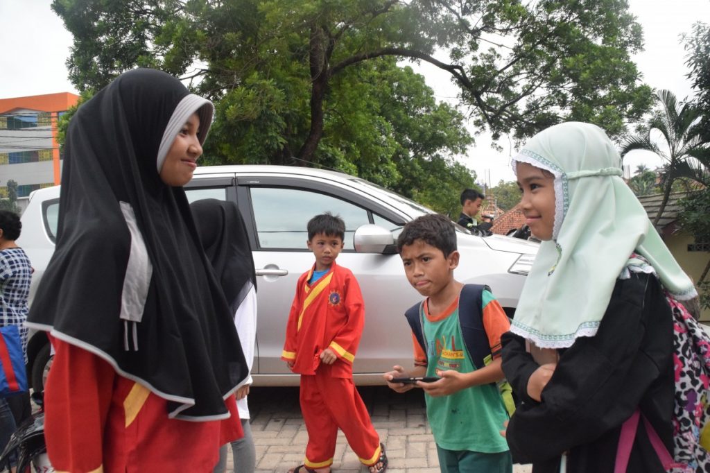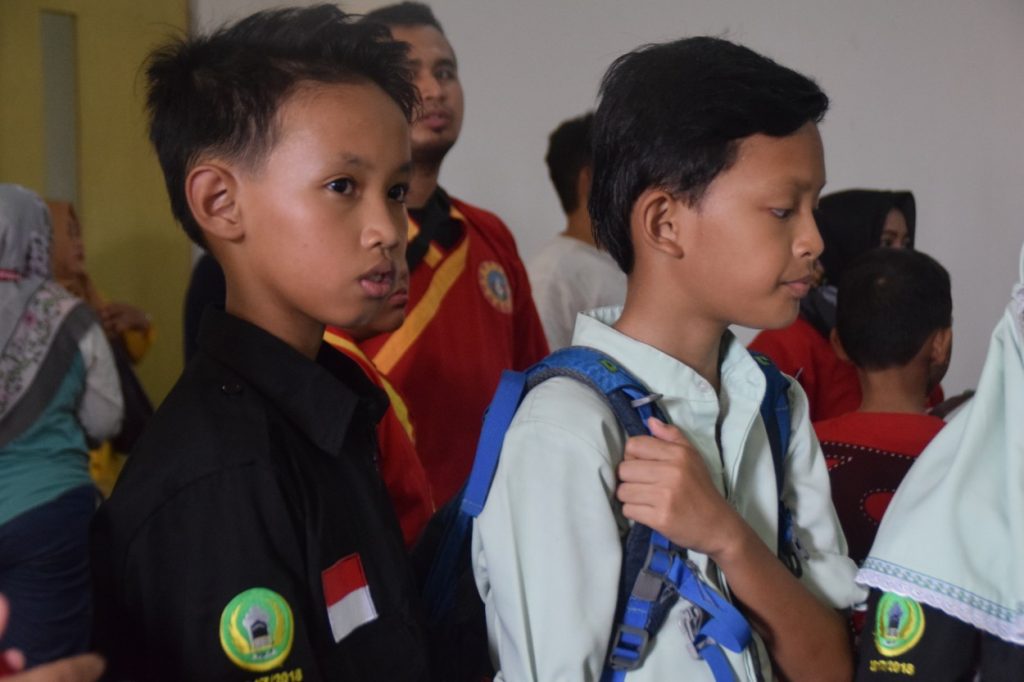 Setelah sampai di tujuan bergegas para jurnalis cilik ini menuju venue tempat pertandingan dilaksanakan yaitu di lantai III Gedung pertanian pasca sarjana. Alhamdulillah tim jurnalis dapat menyaksikan dua pertandingan secara langsung atlet silat dari SD Islam Darunnajah.
