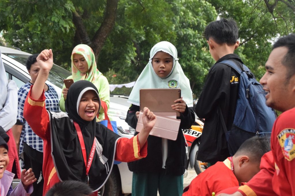 Para siswa jurnalis sibuk mengabadikan setiap momen dengan kamera handphone-nya dan saat pertandingan usai dengan cekatan para jurnalis cilik ini mendekati para altet untuk mendapatkan infomasi.