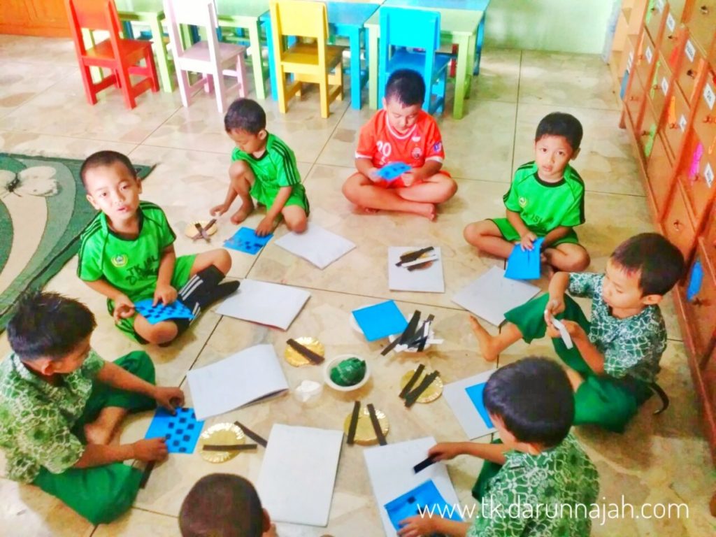 TK Islam Darunnajah telah menerapkan pendekatan pembelajaran sentra. Kali ini di Kegiatan kami di sentra seni yaitu membuat karpet dari anyaman origami.