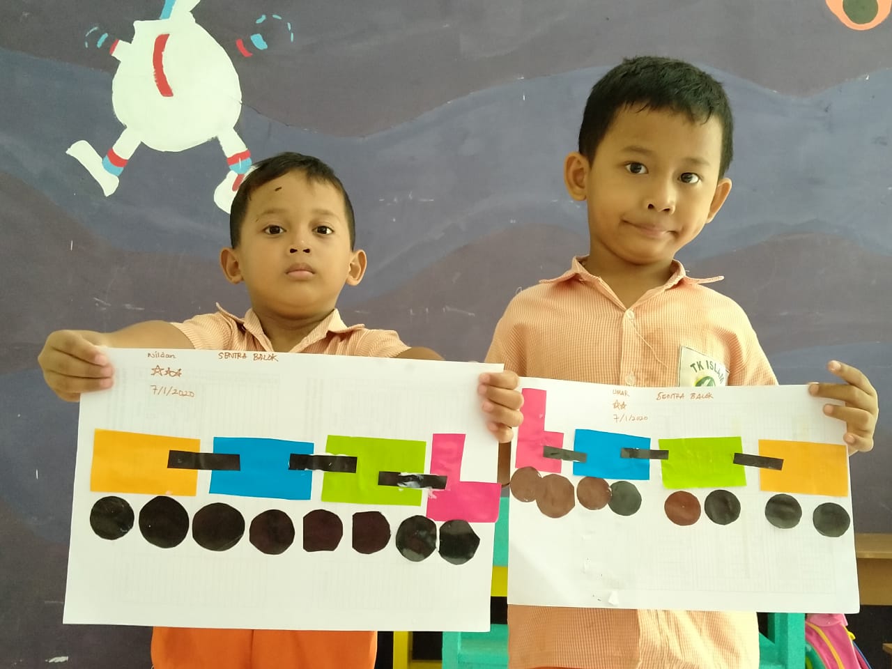 TK Islam Modern Darunnajah telah menerapkan pedekatan pembelajaran sentra. Kali ini di kegiatan ini, di sentra Balok yaitu membuat Kereta dari kepingan geometris dari kertas Origami.