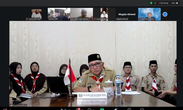 Dr. Abu Sarhan menyampaikan kebutuhan Persatuan Pramuka Wreda Arab untuk mempelajari kurikulum pelatihan kepramukaan di Darunnajah, khususnya program kualifikasi KMD, KML, KPD, dan KPL.