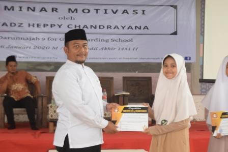 Pamulang- 26 Januari 2020 alhamdulillah Pondok Pesantren Darunnajah 9 mengadakan Seminar Motivasi bersama Ust. Heppy Chandra untuk yang kedua kalinya. Jika saat itu seminar yang diadakan bertema”Public Speaking”. Yang mana berhasil membuka pemikiran para Santriwati, bahwa tidak selamanya berbicara didepan umum itu menakutkan. Sehingga menciptakan kepercayaan diri Santriwati Darunnajah 9 akan hal tersebut.