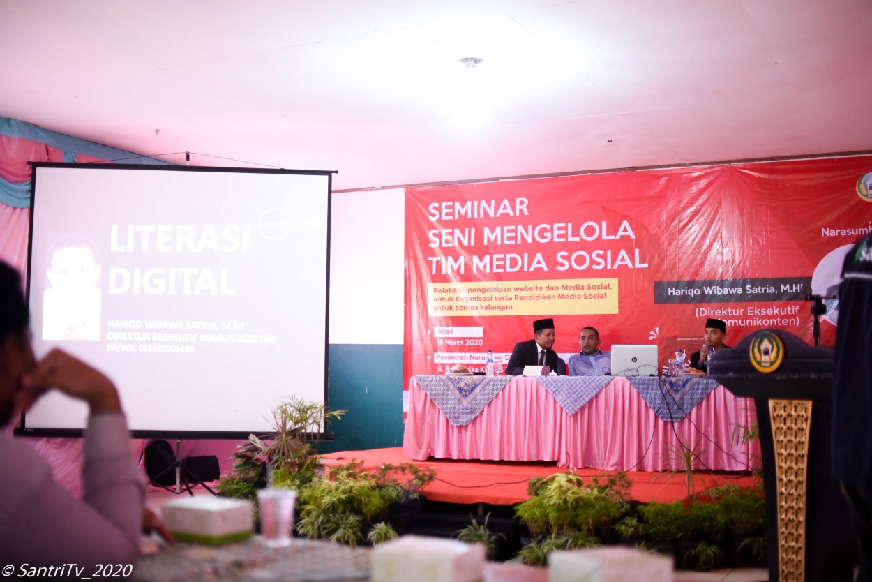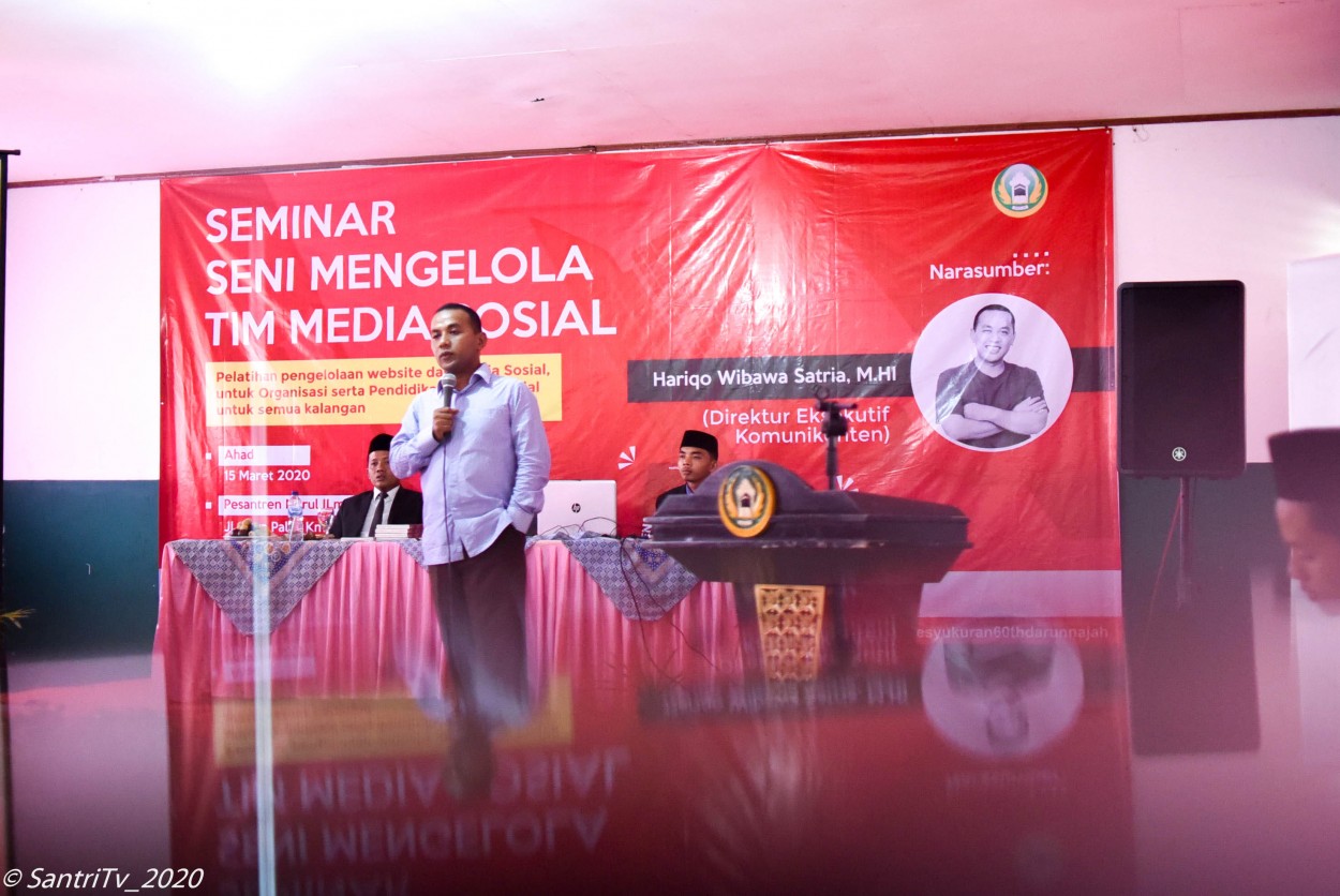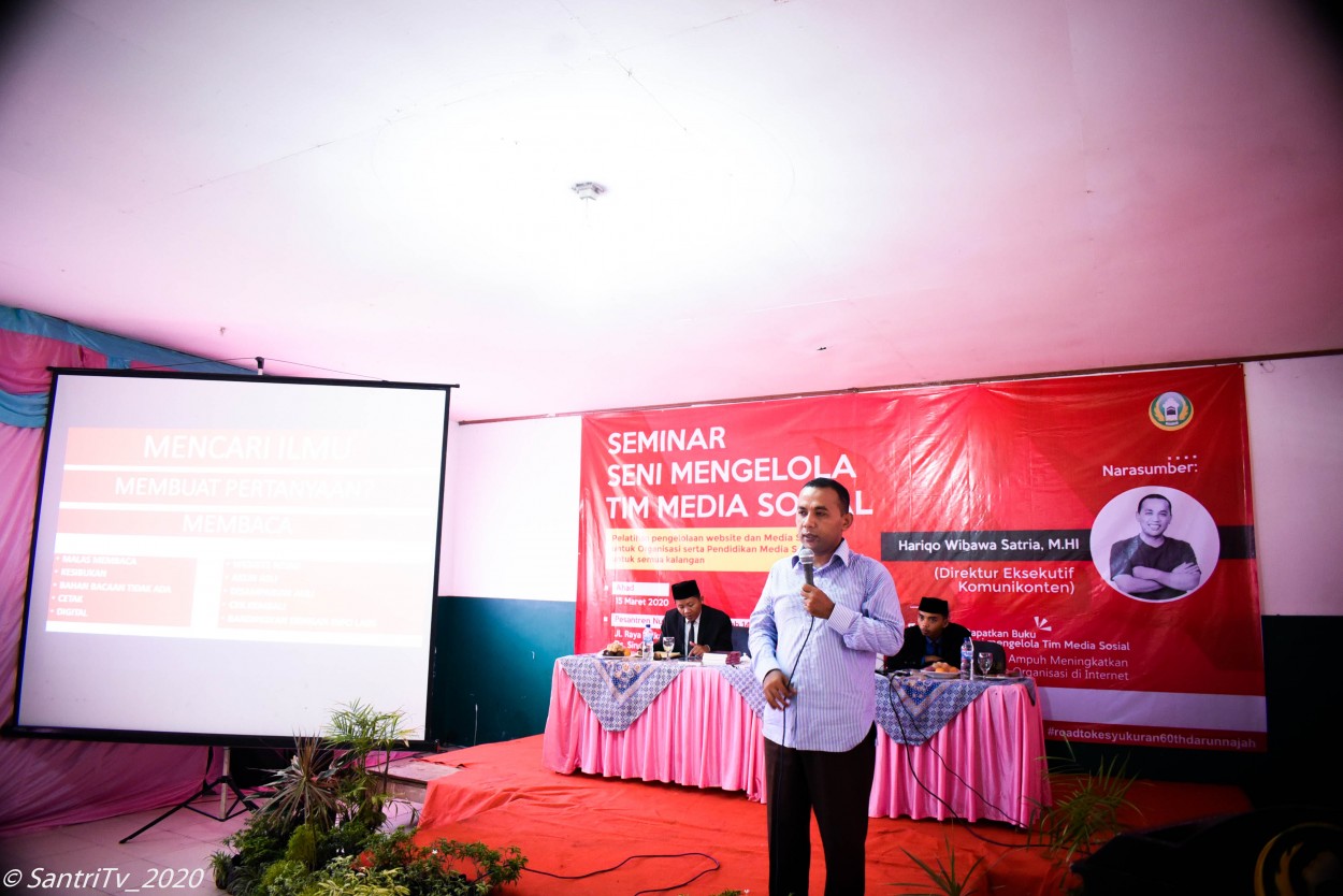 Tepat pukul 08.00 WIB pada Hari Minggu, 15 Maret 2020 Seminar Mengelola Tim Media Sosial. Acara dibuka dengan di awali moderator. Ust Kemal Pamungkas, Membaca CV Pemateri dengan jelas nya Hariqo Wibawa Satria, M.HI lengkap dengan curriculum vitae miliknya dengan dibacakan dengan moderator. Penulis buku “Seni Mengelola Tim Media Sosial” juga sebagai Direktur Komunikonten