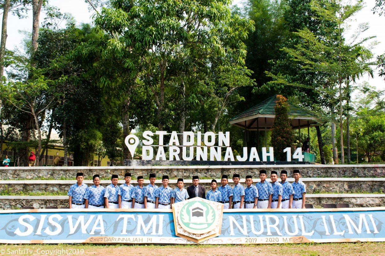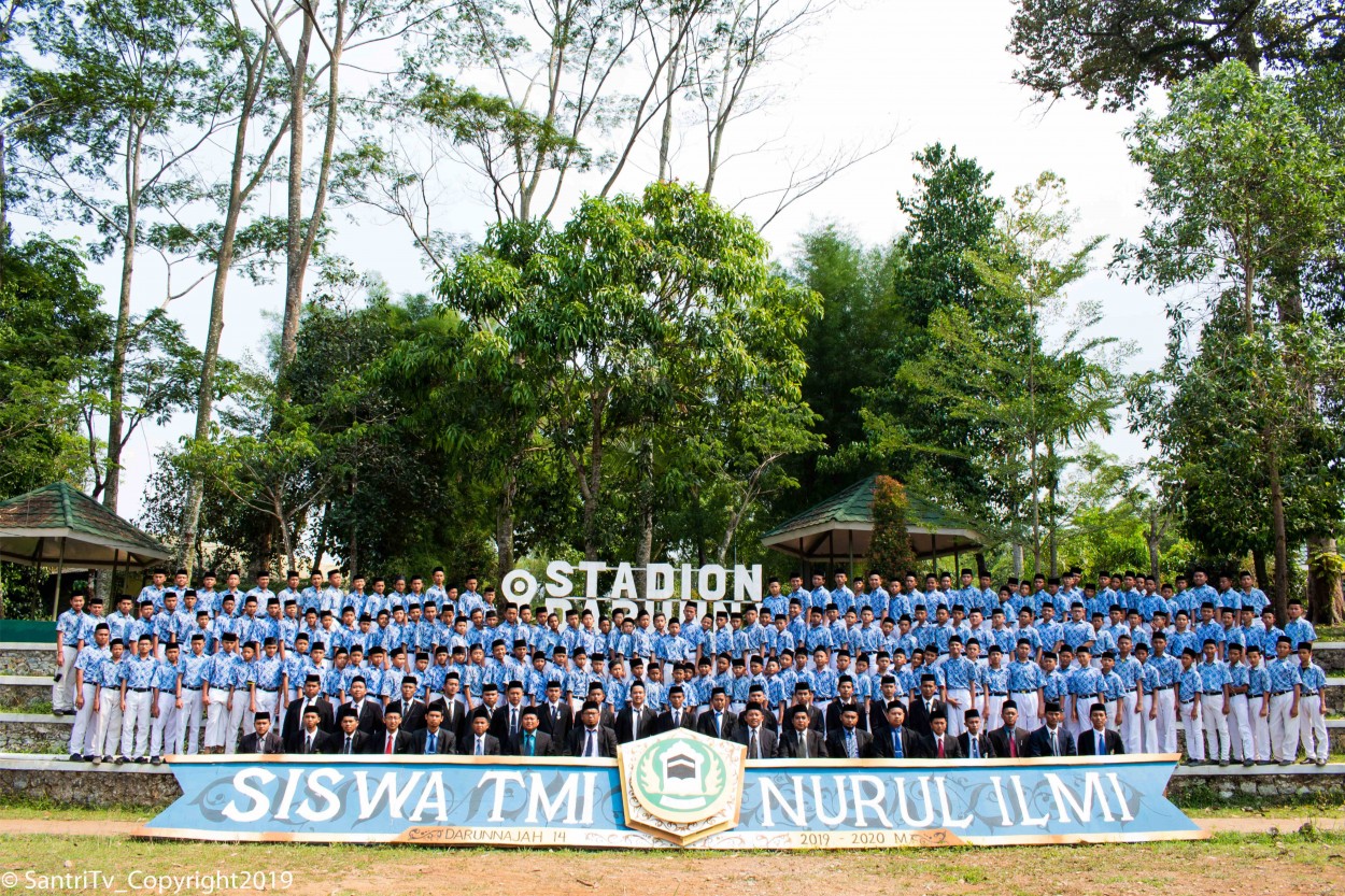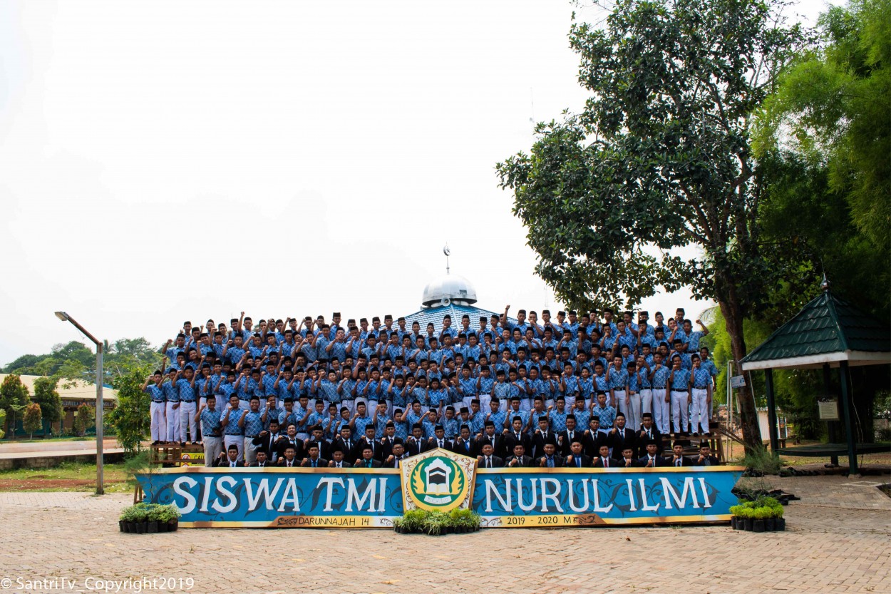 Seluruh Santriawan Dan Dewan Asatidz Berkumpul di depan masjid ja’mi Birul Walidain guna perfotoan bersama, agenda ini di laksanakan tiap tahun nya sesuai kalender pendidikan TMI Nurul Imi Darunnajah 14