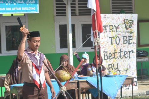 Yaitu Kak Miftahuddin, Pembina Upacara ini berdiri dengan gagah perkasa dihadapan peserta GP dan GPS. Beliau membuka acara kali ini dengan penancapan golok di kelapa. Disambung dengan doa semoga Acara ini berlangsung dengan lancar sampai di akhir acara nanti. Aamin. (AJR).