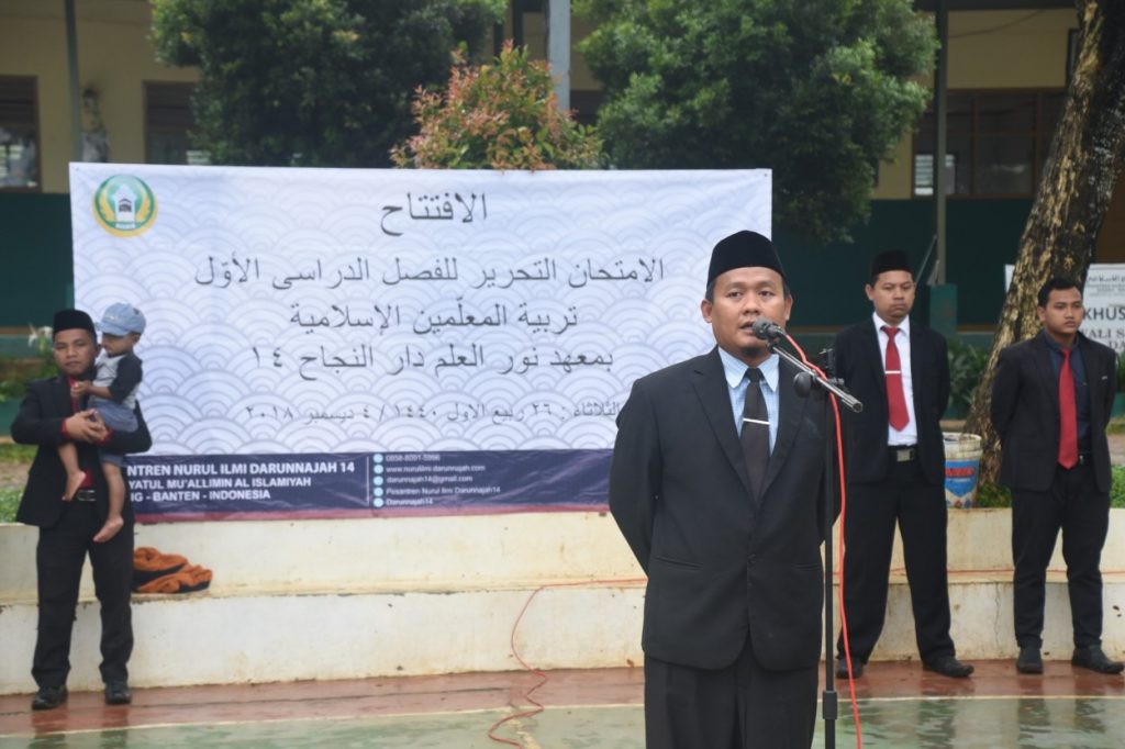 4 Desember 2018, Tepat nya pukul 06:00 WIB. Telah terlaksana Upacara Pembukaan ujian tulis untuk semester ganjil tahun ajaran 2018-2019. di lapangan basket nurul ilmi darunnajah 14, taujihat ini diperuntukan santri kelas 1-5 TMI Karena pada kesempatan kali ini kelas 6 Menjadi Pantia Ujian.